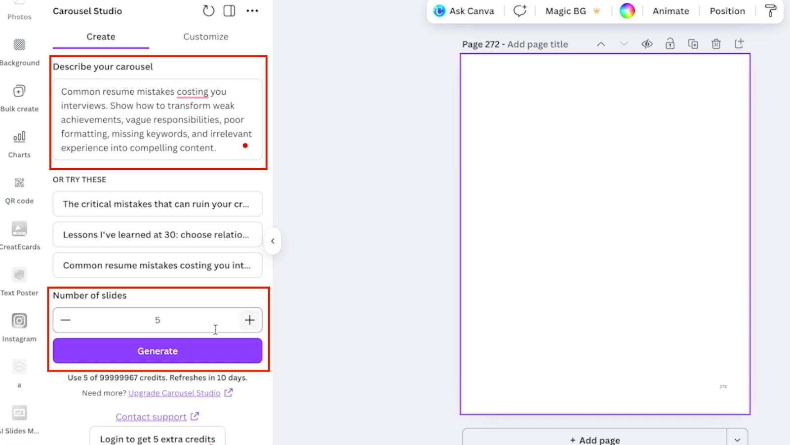 Step 3: Describe Your Carousel With a Prompt