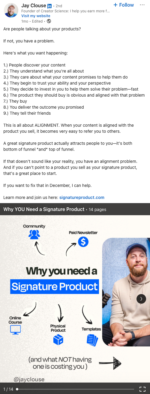A LinkedIn carousel post will often include: