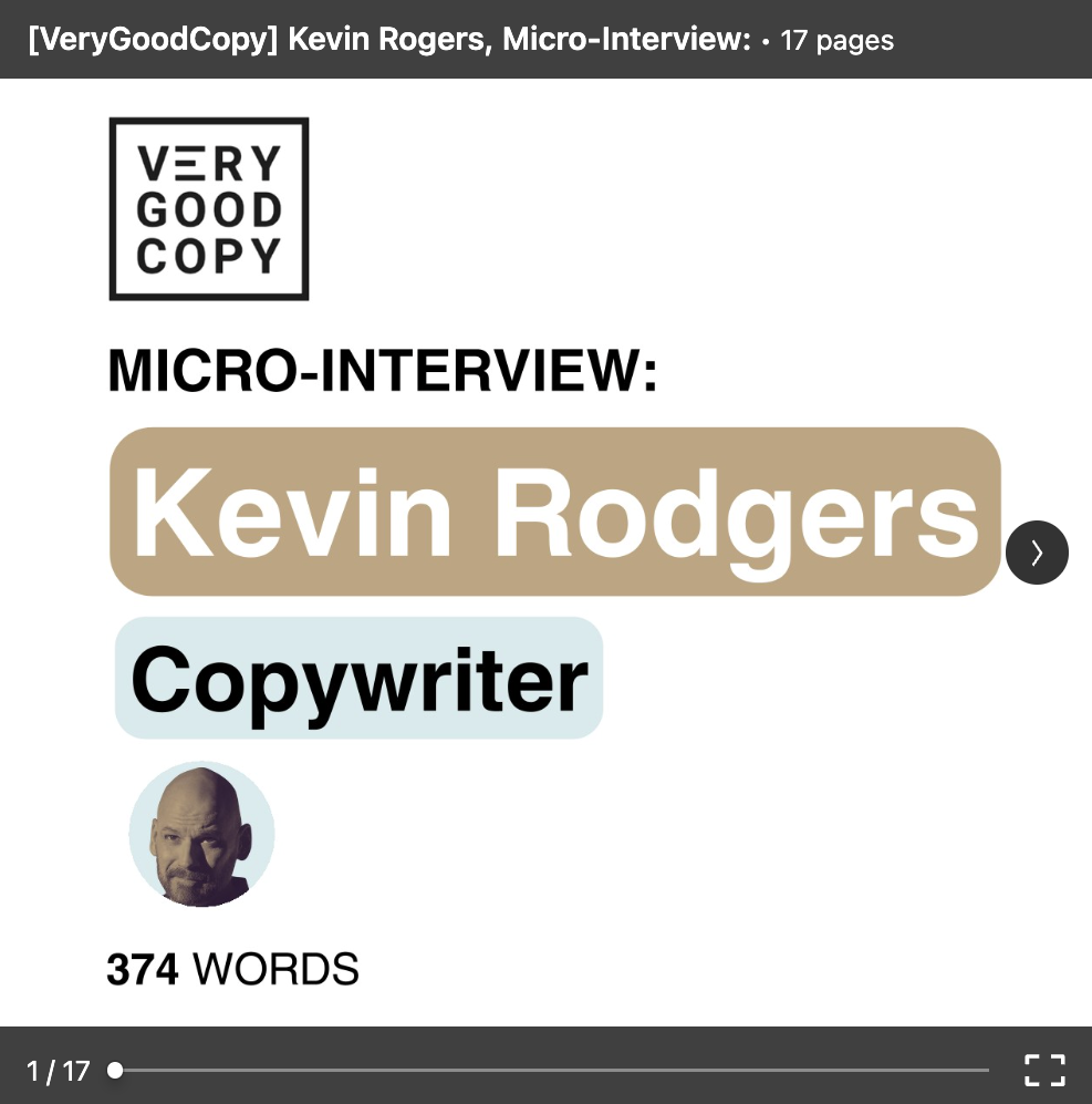 - Very Good Copy - Micro Interviews; share key highlights of an insightful conversation